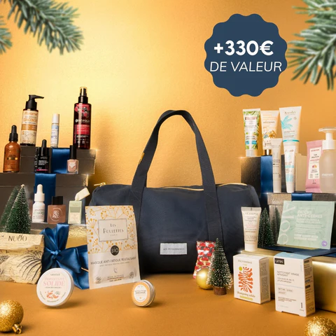 - Mademoiselle bio : 25 produits de beauté naturels. Il est composé de 21 marques et 25 cases : 7 produits full size et 18 soins en travel size généreux.
